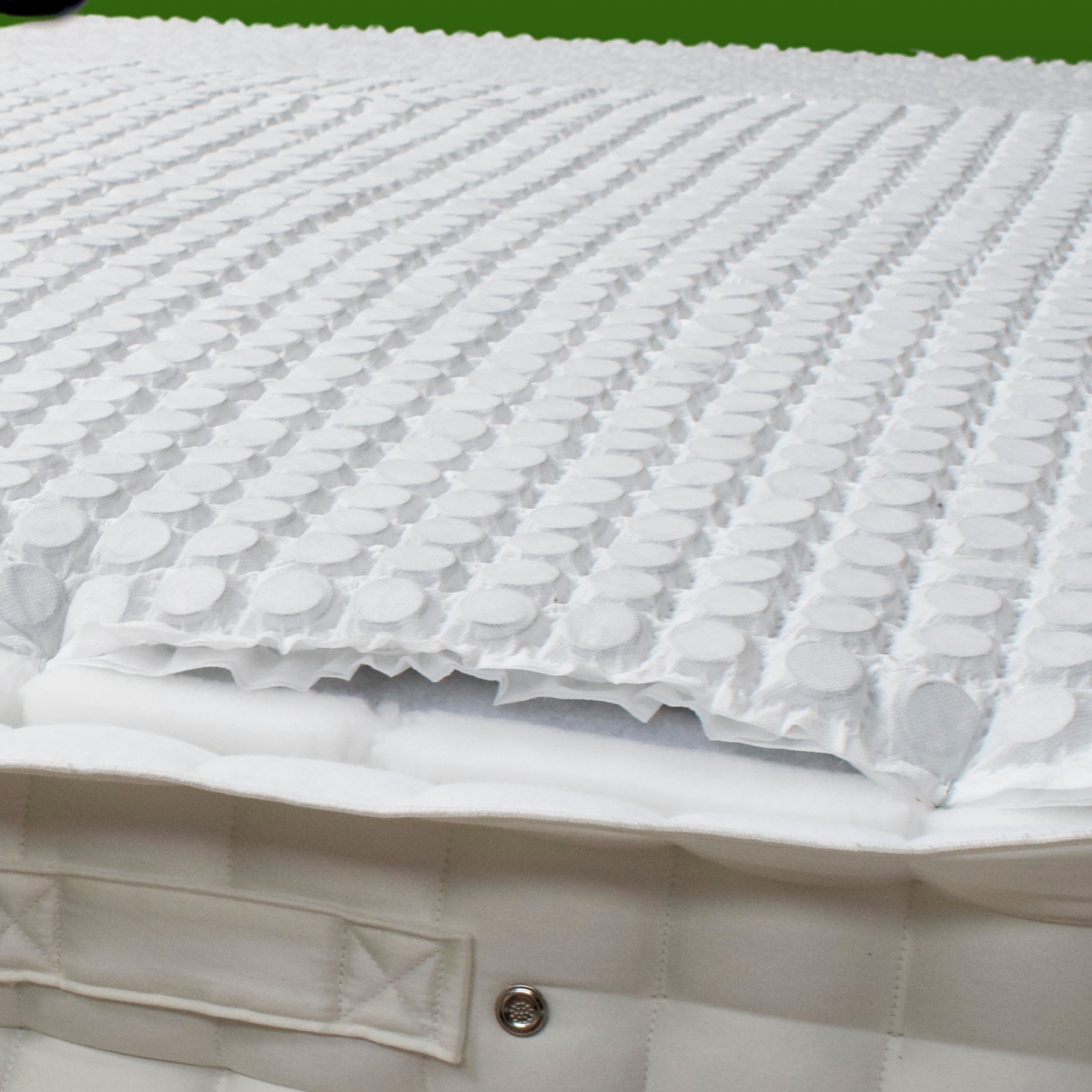 Most of the beds are fixed on the sides with glued layers.Our mattress pads are attached to the surface of the mattress and hand sewn by English craftsmen to provide even weight distribution and superior support.