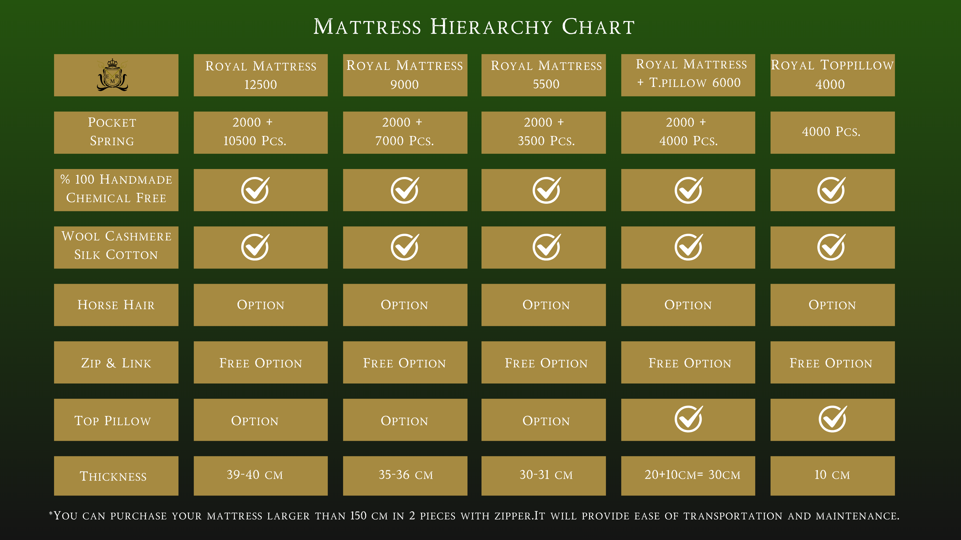 Your handmade Royal mattress has 10 years warranty.